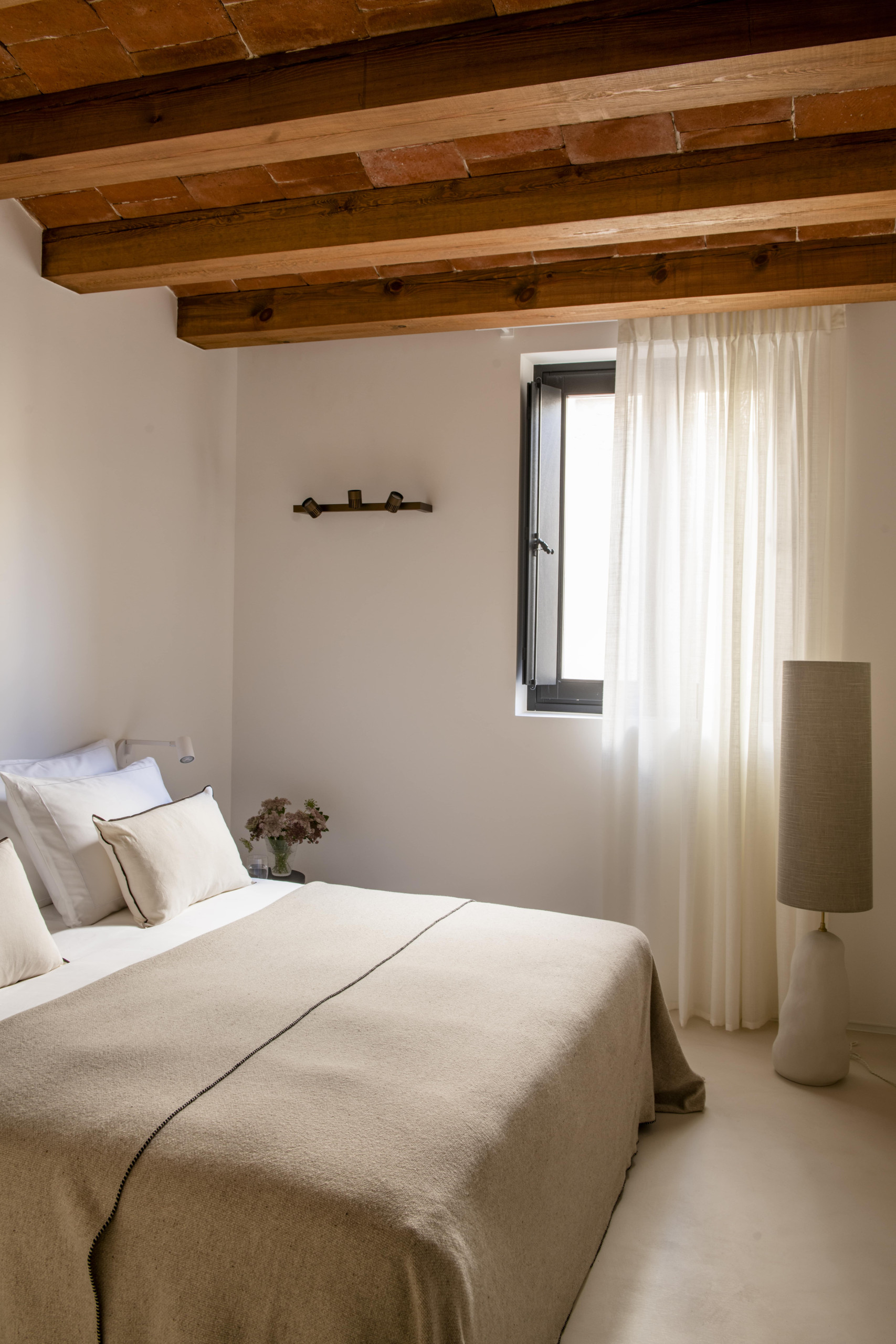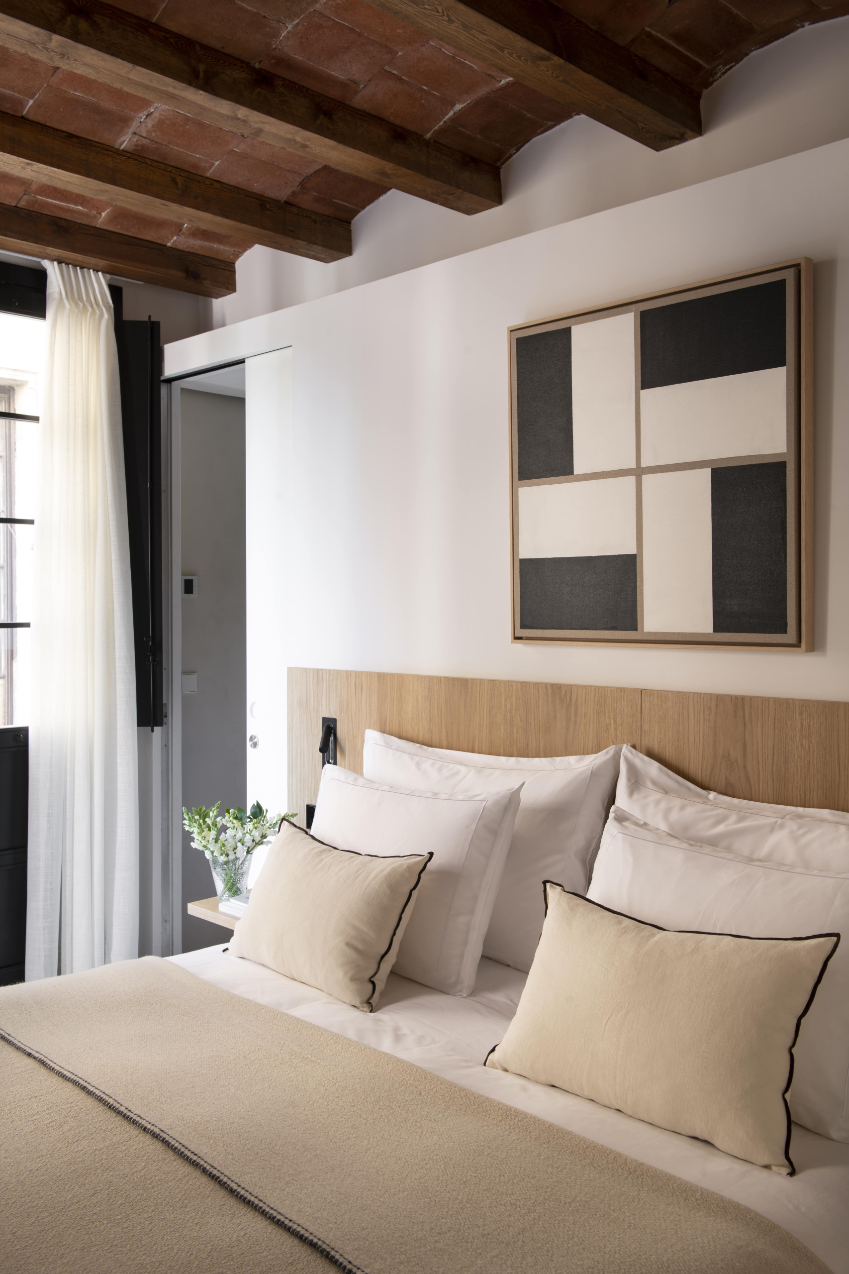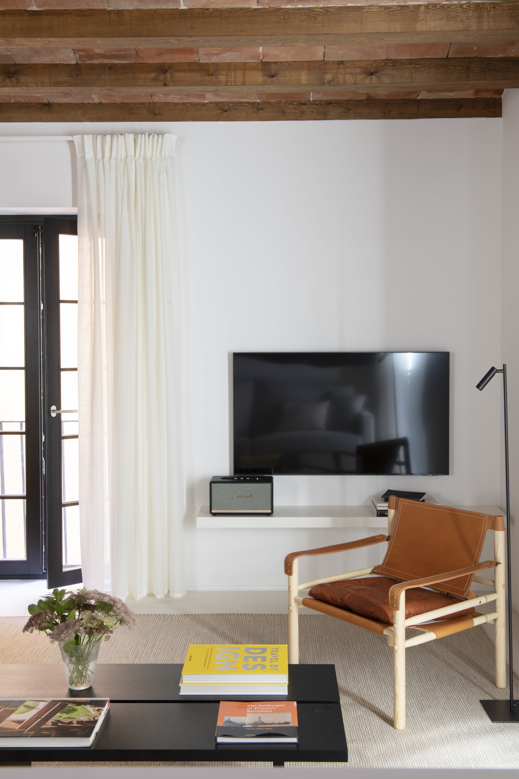 Apartamento de alta gama de 120m2 con 2 dormitorios dobles, ambos con baños en suite, y uno individual. Además de un salón abierto que se comunica directamente con una cocina Bulthaup, y un pequeño balcón típico a la calle Mercè.