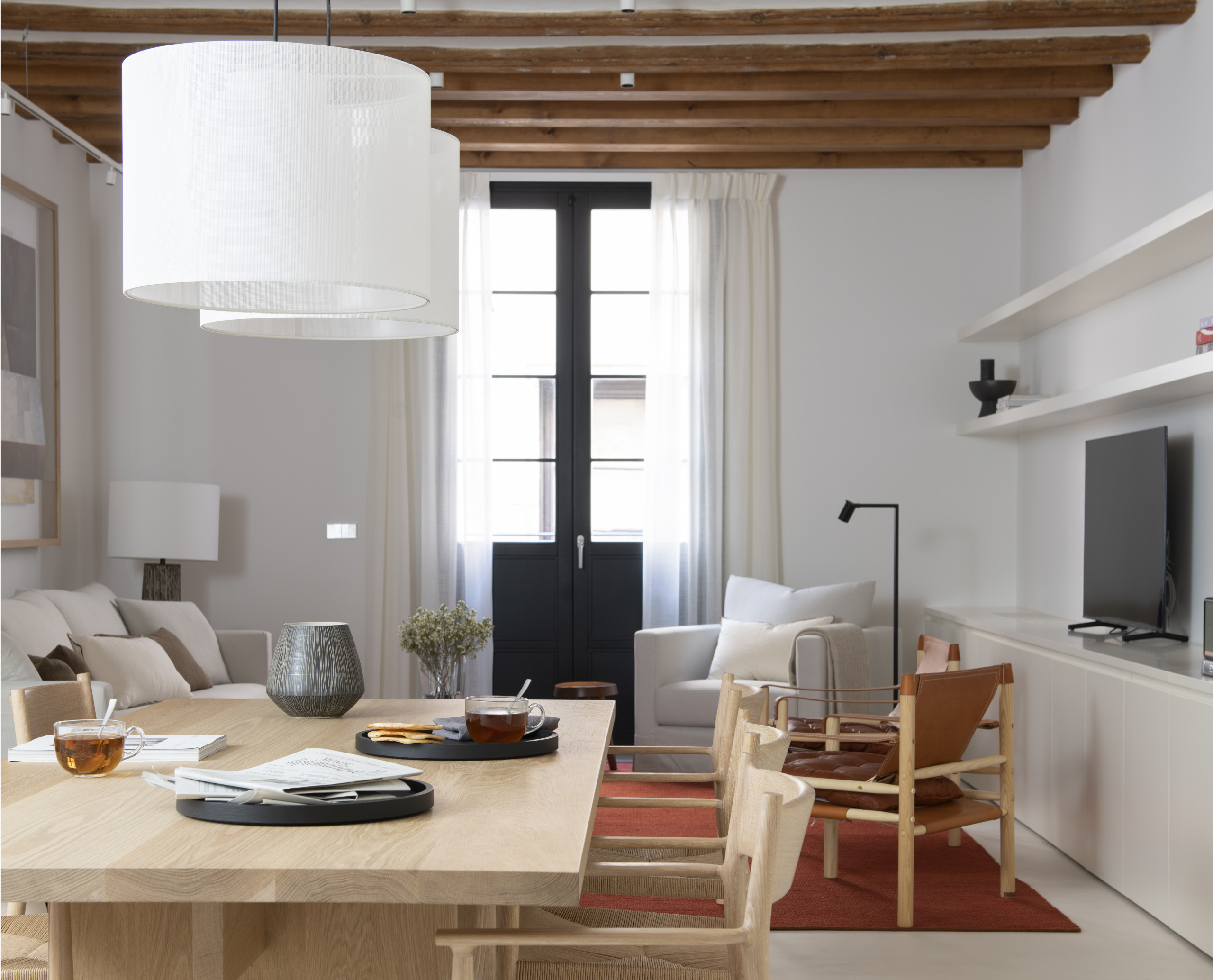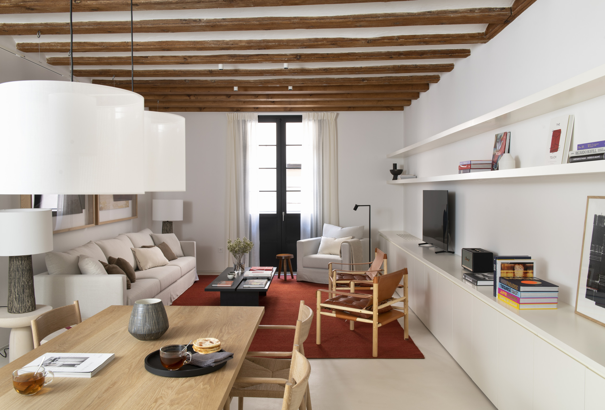 Located near the picturesque Port Vell and in the heart of the historic city of Barcelona, this apartment offers an exclusive and elegant retreat. The high ceilings with wooden beams and the arches in the rooms evoke the feeling of being in one of the charming Balearic Islands. With three bedrooms and three bathrooms, this apartment not only offers spacious accommodation but also the additional luxury of two impressive patios. Each bedroom has its own bathroom, two of them en suite, providing maximum comfort and privacy.